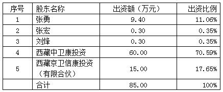 2013 年9 月30 日,北京京衛(wèi)信康科技股東會(huì)同意北京京衛(wèi)信康科技注冊資本從850萬元減至85 萬元,各股東持股比例保持不變,并通過新的公司章程。